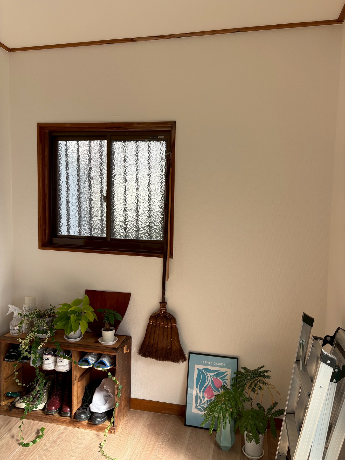 - 玄関の一面だけタイル調クロスで“おもてなし感”を演出